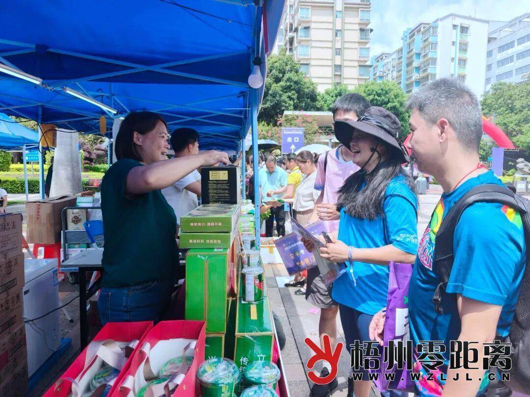 4月18日,在市政广场上,人们正在选购梧州特产龟苓膏。